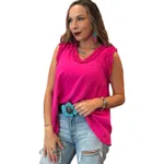Pullover Vest Summer Elegance Wooden Ear Sleeveless Top - Rose