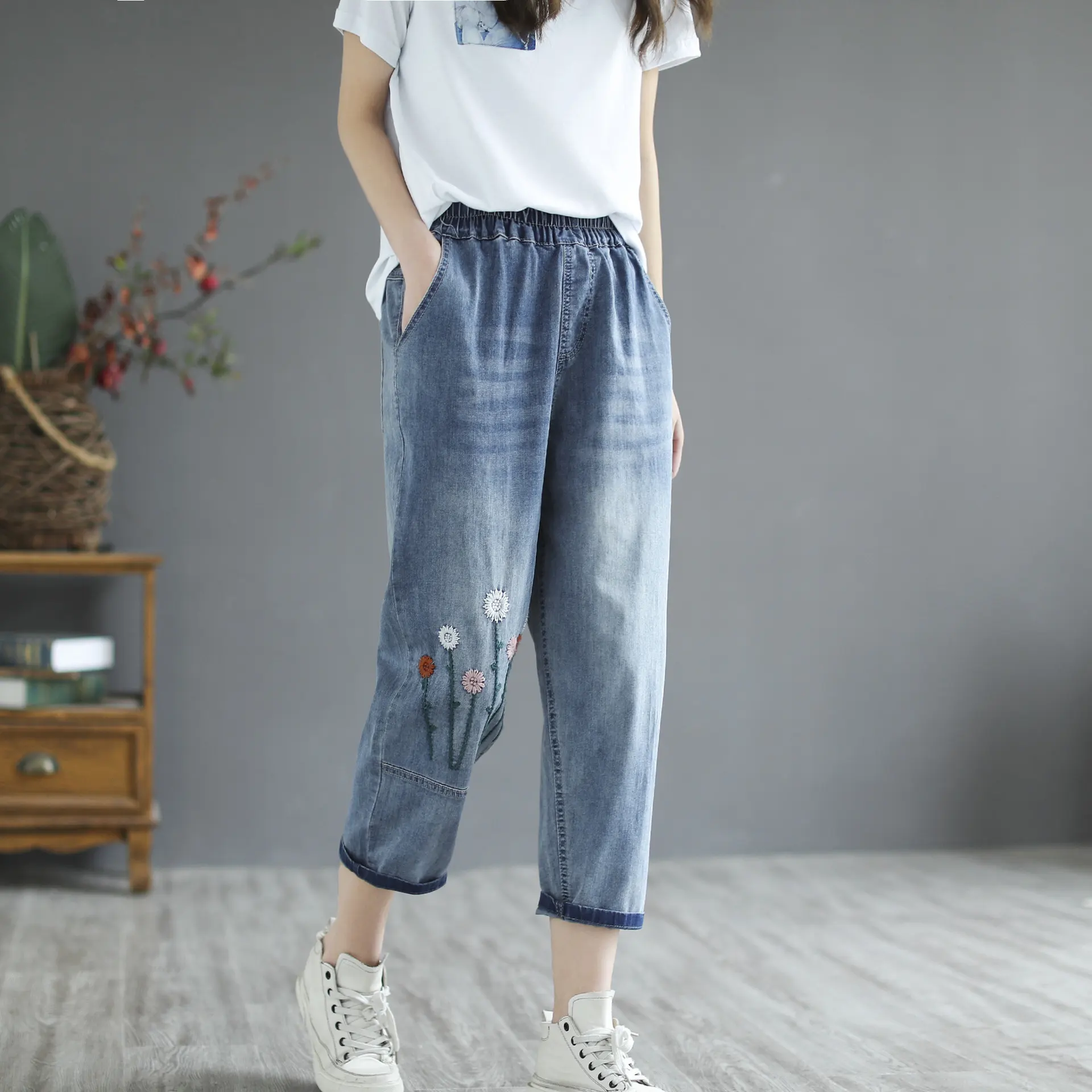 Product information: Fabric name: Denim Main fabric composition: cotton Style: harem pants Pants length: cropped pants Style: OL commuter Size Information: Size: M/L/XL (CM) Pants length waist Hips thigh circumference M 81 62-82 106 60 L 81.5 68-88 112 62 XL 82 78-94 118 64 Note: 1. Asian sizes are 1 to 2 sizes smaller than European and American people. Choose the larger size if your size between two sizes. differences due to . 2. Please check the size chart carefully before you buy the item, if you don't know how to choose size, please contact our customer service. 3.As you know, the different computers display colors differently, the color of the actual item may vary slightly from the following images. Packing list: Jeans*1 Product Image: Full image: