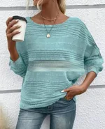 Round Neck Splicing Pullover Top T-shirt - Lake
