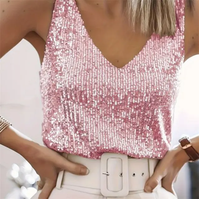 Product information: Pattern: Sequins Fabric name: Sequins Color: black, light yellow, silver, champagne, green, pink Elasticity: Micro elasticity Main fabric composition: Spandex Size: S,M,L,XL,XXL,XXXL Version: Regular Applicable Gender: Female Style type: temperament commute Applicable age group: Adult Popular elements: Sequins Size: Note: 1. Asian sizes are 1 to 2 sizes smaller than European and American people. Choose the larger size if your size between two sizes. differences due to . 2. Please check the size chart carefully before you buy the item, if you don't know how to choose size, please contact our customer service. 3.As you know, the different computers display colors differently, the color of the actual item may vary slightly from the following images. Packing list: Top*1 Product Image: