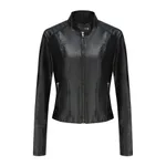 Short Slim-fit Leather Coat - Black