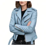 Short Leather Jacket Coat Jacket Pu - Sky Blue