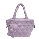 Solid Color Diamond Plaid Shoulder Handbag - Purple