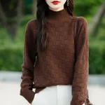 Square Decorative Solid Color Long-sleeved Knitted Sweater - Coffee