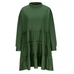 Stitching Loose-fitting Pleated Sweater Dress - Dark Green