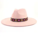 Suede Bohemian Large Brim Flat Top Hat - Pink