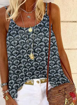 Summer Bohemian Print Loose Strap Top - Black