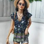 Summer Bohemian Short Sleeve Top T-shirt - Navy