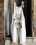 Summer Cotton Linen Suspender Trousers Printed
