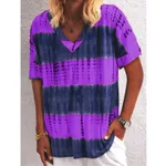Summer V-neck Tie-dye Printing Short-sleeved T-shirt Top - Purple