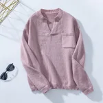 Sweater Solid Color Pocket Loose - Lotus Root