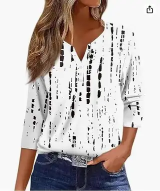 Product information: Pattern: color matching Color: 47,48,49,50,51,52,53,54,55,56,57,58,59,60,61,62 Size: S,M,L,XL,XXL,3XL Version: Loose Style type: street fashion Popular elements: Button Style: pullover Fabric name: Polyester Sleeve type: regular sleeve Main fabric composition: Polyester (polyester fiber) Sleeve length: 3/4 sleeve Process: Printing Size: Note: 1. Asian sizes are 1 to 2 sizes smaller than European and American people. Choose the larger size if your size between two sizes. differences due to . 2. Please check the size chart carefully before you buy the item, if you don't know how to choose size, please contact our customer service. 3.As you know, the different computers display colors differently, the color of the actual item may vary slightly from the following images. Packing list: Women's topX1pieces Product Image:
