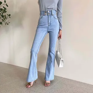 Thin Slim-fit Stretch Light-colored Flared Jeans Trousers - Light Blue