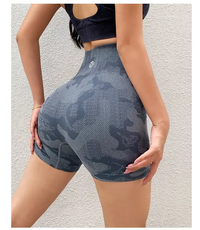 Tight Shorts Summer High Waist Camouflage Pants - Grey