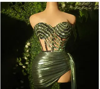 Tube Top Rhinestone Chain Skirt Outfit - Style 9