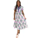 V-neck Flower Print Dress - White