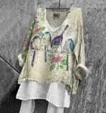 Vintage Birds And Floral Pattern Shirt - Yellow