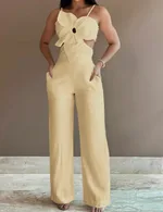 White Three-dimensional Flower Design Sling One-piece Trousers -