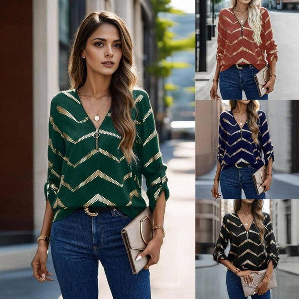Women's Casual Long-sleeved V-neck Striped Shirt