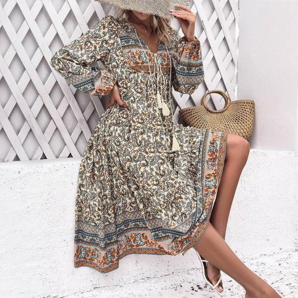 Women's Fashion Casual Holiday Long Sleeve Printed Maxi