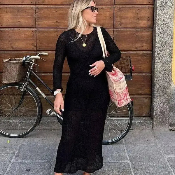 Women's Fashion Temperament Pure Color Midi Skirt Dress