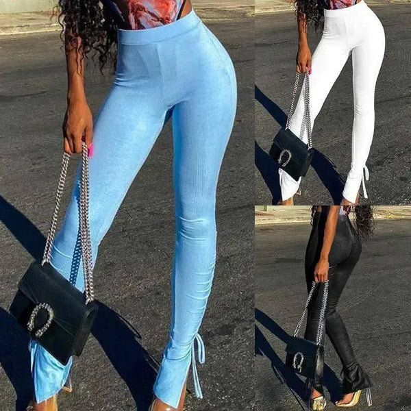 Women's Fashionable With Side-slit Tight High Waist Trousers