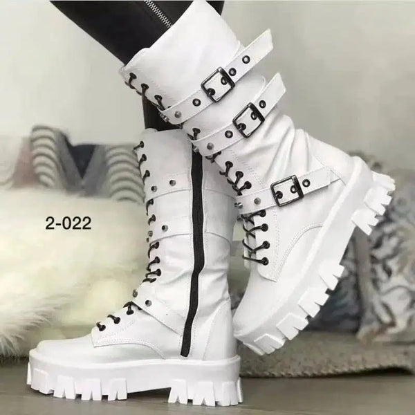 Women's Martin Boots Lace Up Combat Boot Mid Calf Platform