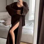 Product information: Thickness: Thin Fabric Name: Polyester Applicable Scenarios: Outdoor, Home, Hotel Bathhouses, Wedding Studios Colors: Brown, Black Pant Length: Cropped Pants Sizes: S, M, L Sleeve Length: Long Sleeve Style: Set Design: European and American Style Size: Note: 1. Asian sizes are 1 to 2 sizes smaller than European and American people. Choose the larger size if your size between two sizes. differences due to . 2. Please check the size chart carefully before you buy the item, if you don't know how to choose size, please contact our customer service. 3.As you know, the different computers display colors differently, the color of the actual item may vary slightly from the following images. Packing list: Top*1pcs+ Pants*1pcs+ Nightgown*1pcs Product Image: