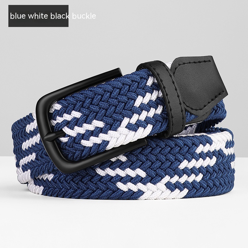 Woven Leather Belt Pant Jeans - Blue, White And Black Buckle