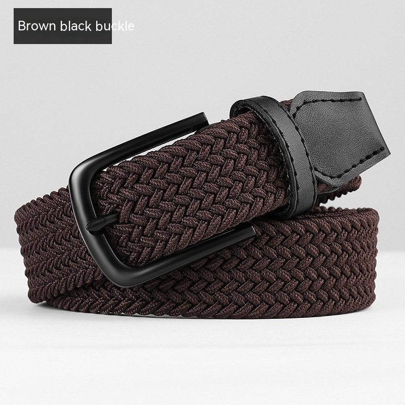 Woven Leather Belt Pant Jeans - Brown Black