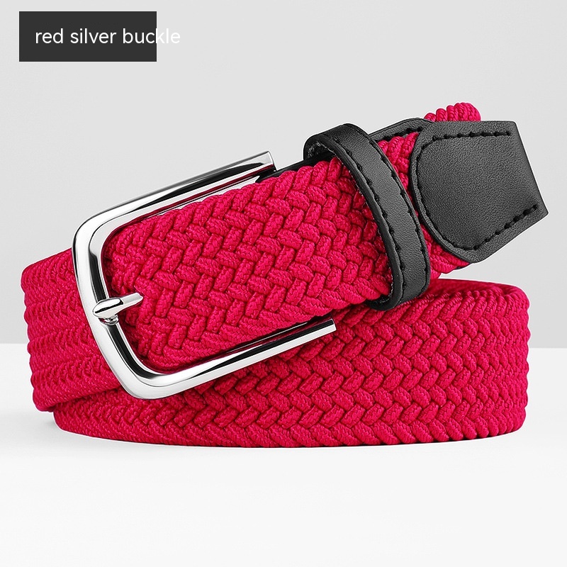 Woven Leather Belt Pant Jeans - Red Silver Buckle