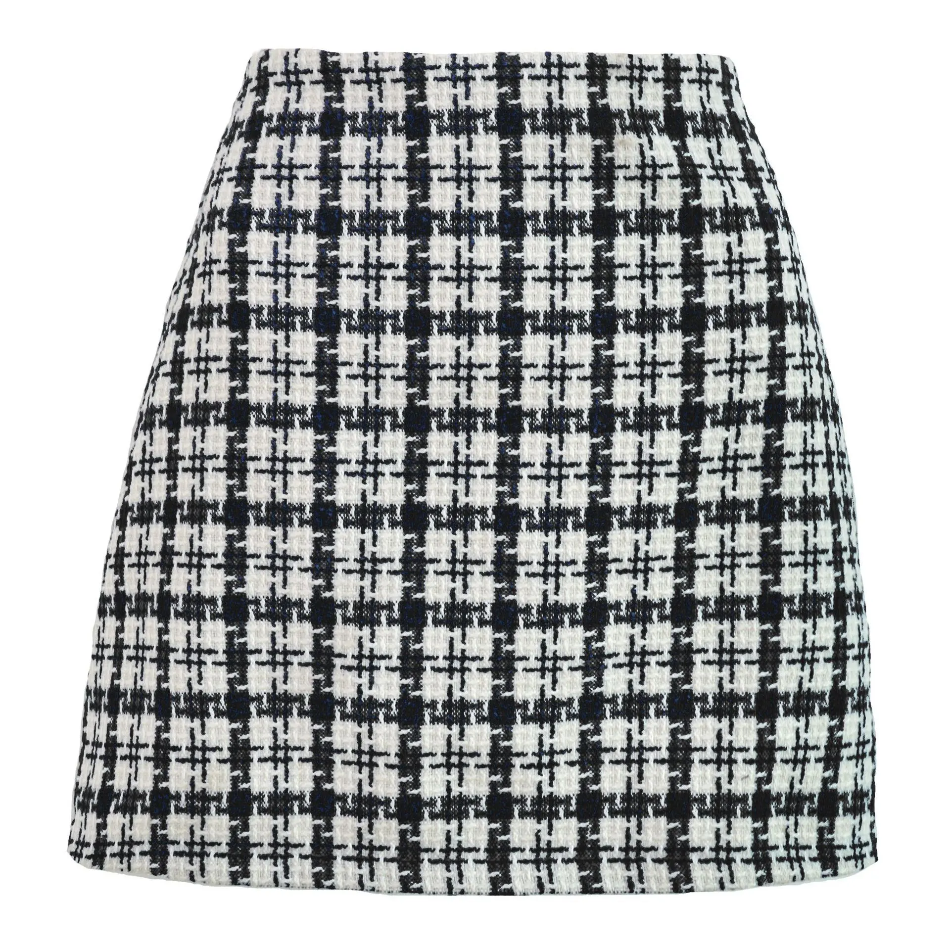 Xiaoxiangfeng Woolen High-waisted Skirt Retro Well Grid A-line Skirt