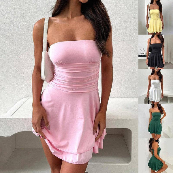 Y2K Tube-top Short Dress Summer Pleated Tight Dresses