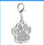 Zinc Alloy Custom Glitter Foot Paw Dog Tag - Silver