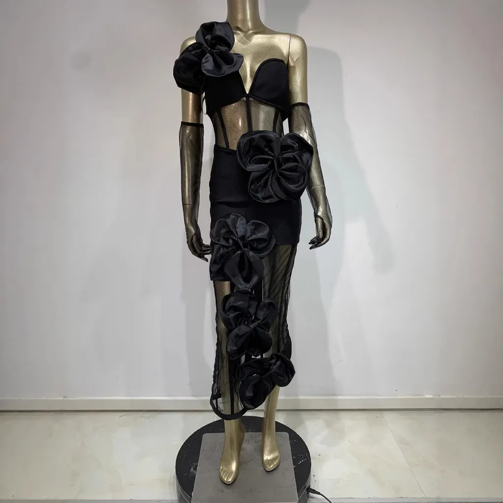 Bandage Skirt Gloves Black Banquet Party Formal