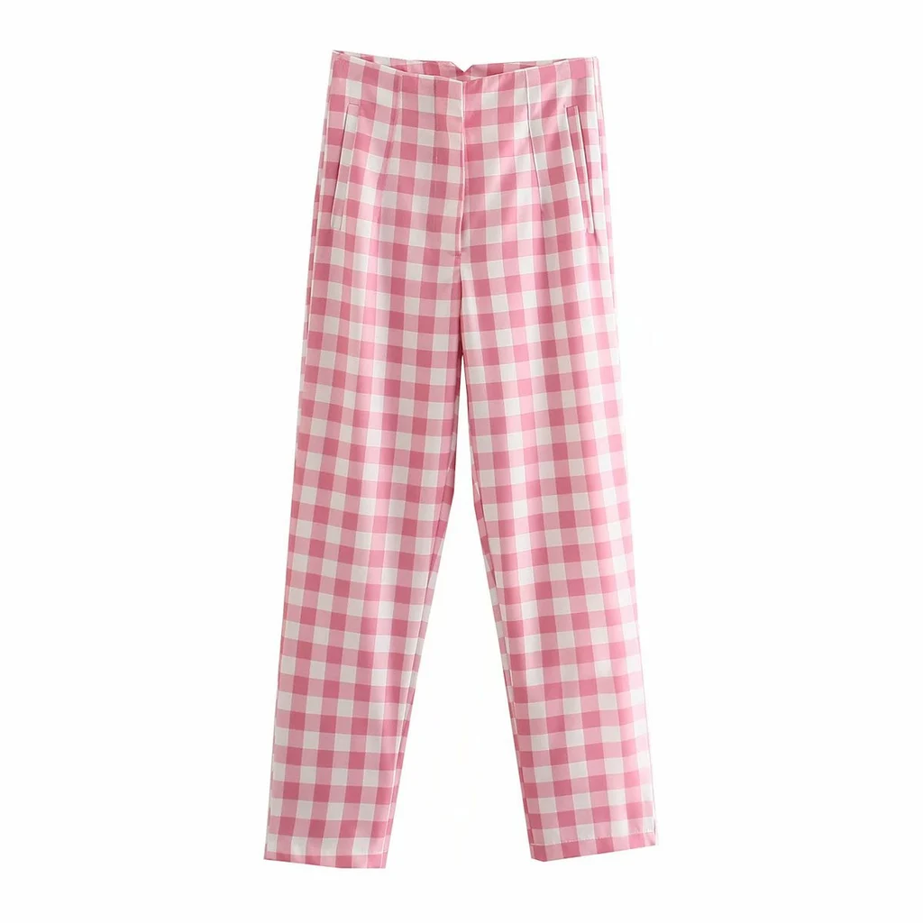 Blogger's Summer Style Plaid High-waisted Feet Pants Girly Pants -