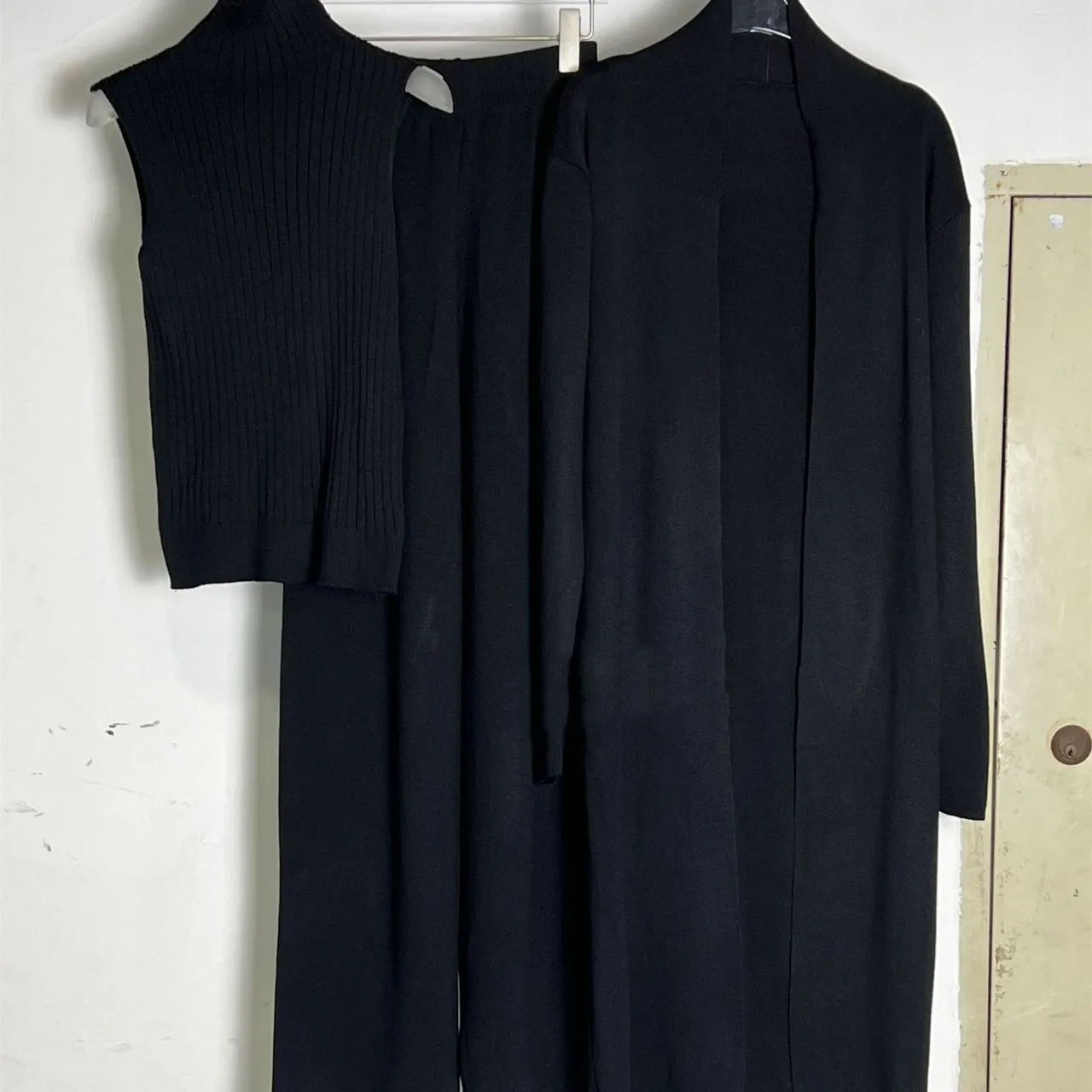 Chubby Knitting Suit Minimalist Three-piece Set - Black
