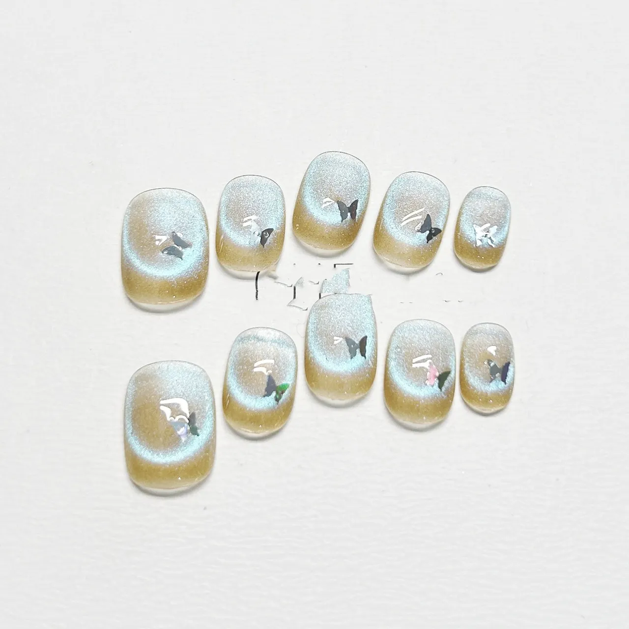 Nail Tip Short Fluorescent Cat Eye Butterfly - Blue Light Butterfly