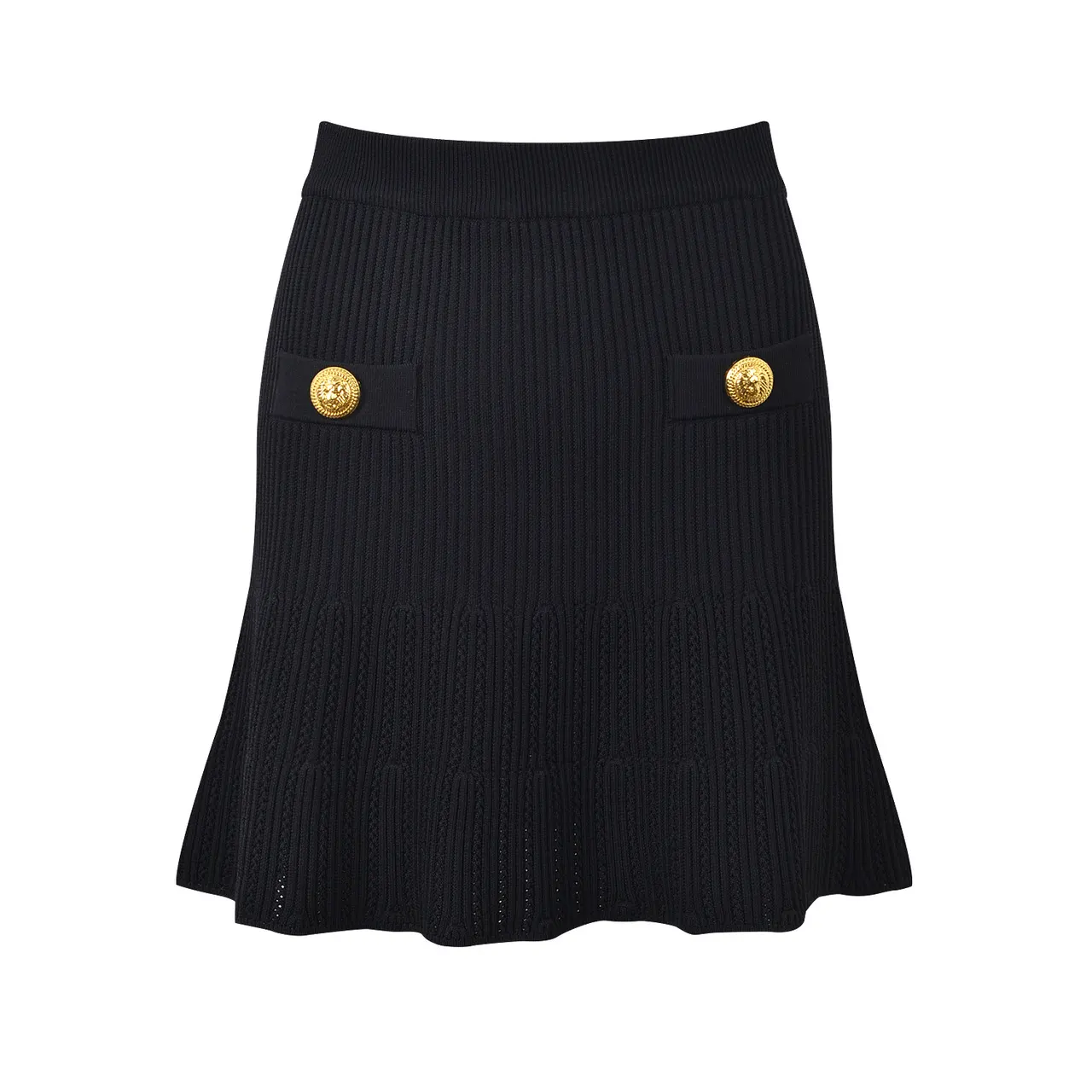 Round Neck Metal Button Knitted Top Mid-length Dress Set - Black