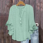 Product information: Fabric name: Polyester Color: black, white, green, blue, pink, purple, Color1,Color2,Color3,Color4,Color5,Color6 Sleeve type: ruffled sleeves Style type: temperament commute Size: Note: 1. Asian sizes are 1 to 2 sizes smaller than European and American people. Choose the larger size if your size between two sizes. differences due to . 2. Please check the size chart carefully before you buy the item, if you don't know how to choose size, please contact our customer service. 3.As you know, the different computers display colors differently, the color of the actual item may vary slightly from the following images. Packing list: T-shirt*1pcs Product Image: