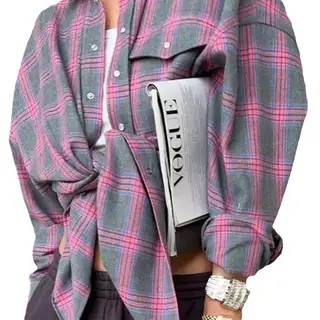 Retro Style Versatile Loose Plaid Long Sleeve Shirt - Purple
