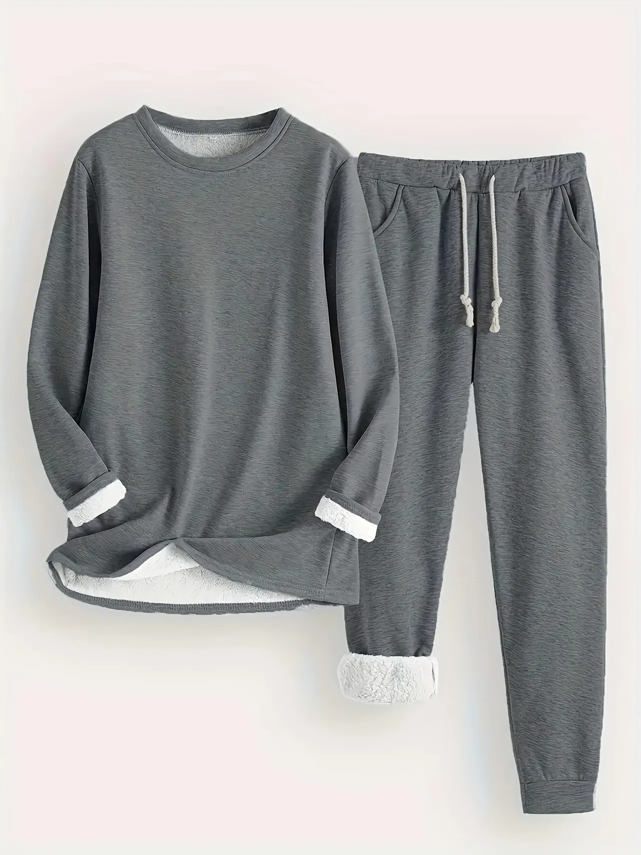 Solid Color And Thermal Quilted Homewear Suits - Dark Gray
