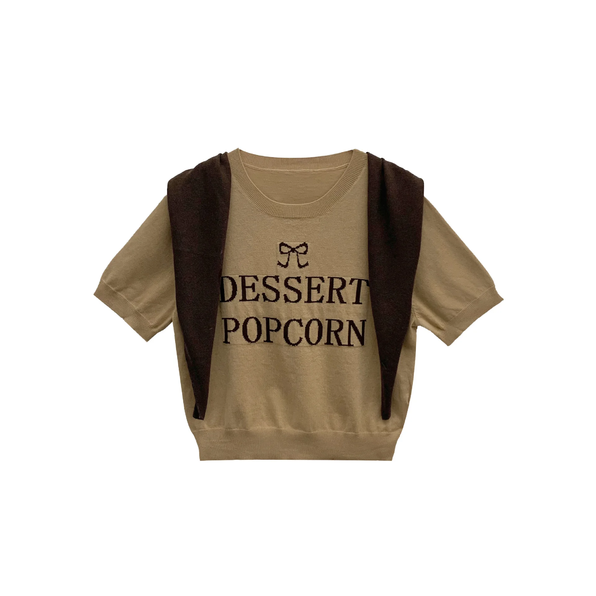 Ten Three Lines Knitwear Two-piece Embroidery Short Sleeve Top - Khaki