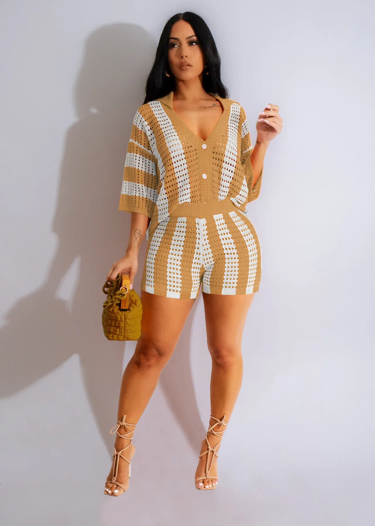 Clothing Hollow Out See-through Lapel Knitting Suit - Z0235 Khaki