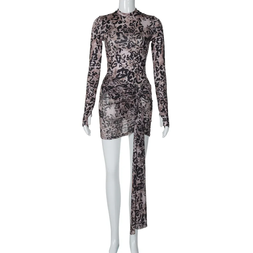 Leopard Print Jumpsuit Mesh Suit - Khaki