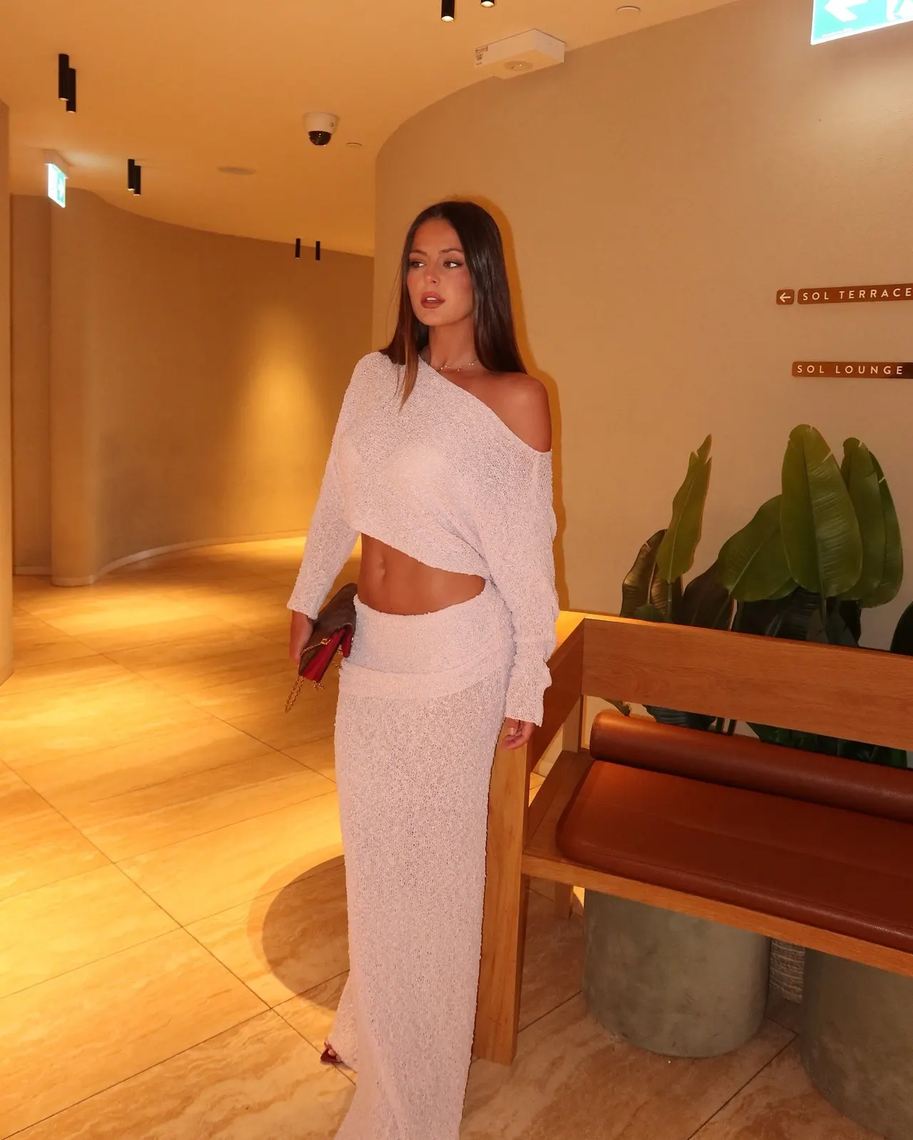 Off-the-shoulder Pleated Dress Knitting Suit -